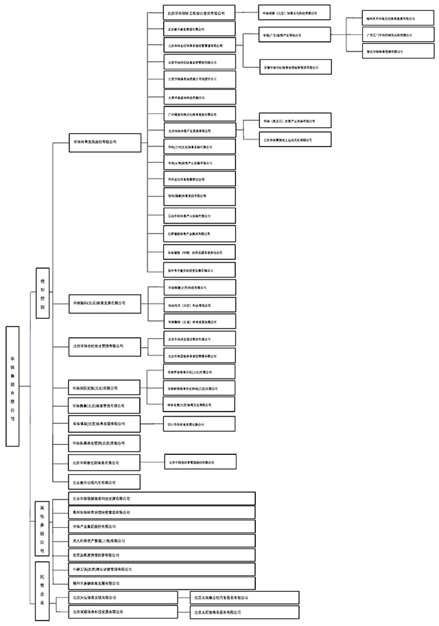 中国奥委会控股的国有体育产业国有资本运营公司,成立于1993 年,公司设有体育金融、体育科技、体育赛事、体育建设、体育场馆运营、体育旅游、物业及实物性资产管理、体育孵化业务等八大业务板块,下属子公司、分公司、参股企业共计20 余家,2 家上市(挂牌)企业。